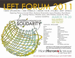 Below is some info on the panels I will be involved in, but I urge you to come out for all of the amazing discussion going on over the course of the 3 days. Plus, dozens and dozens of progressive organizations, publishers and activists will have tables in the main hall---here’s your chance to buy books, DVDs, CDs and posters to fuel your radical fire. Check out www.leftforum.org for more info.